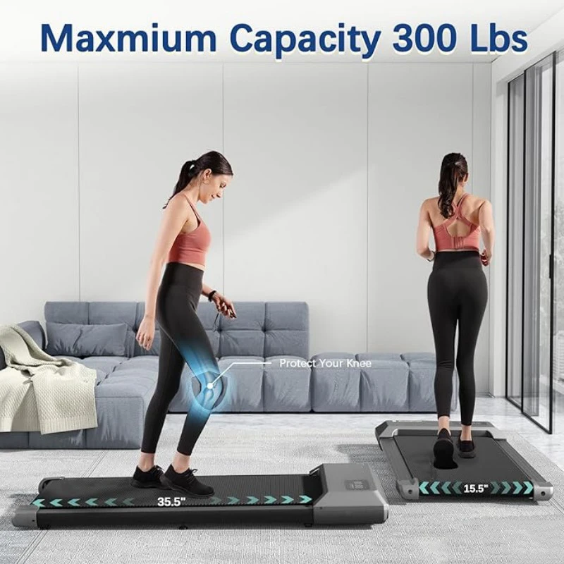 Slim, space-saving treadmill that fits easily under desks or beds—perfect for small spaces and home setups. - Supports Up to 300lbs
